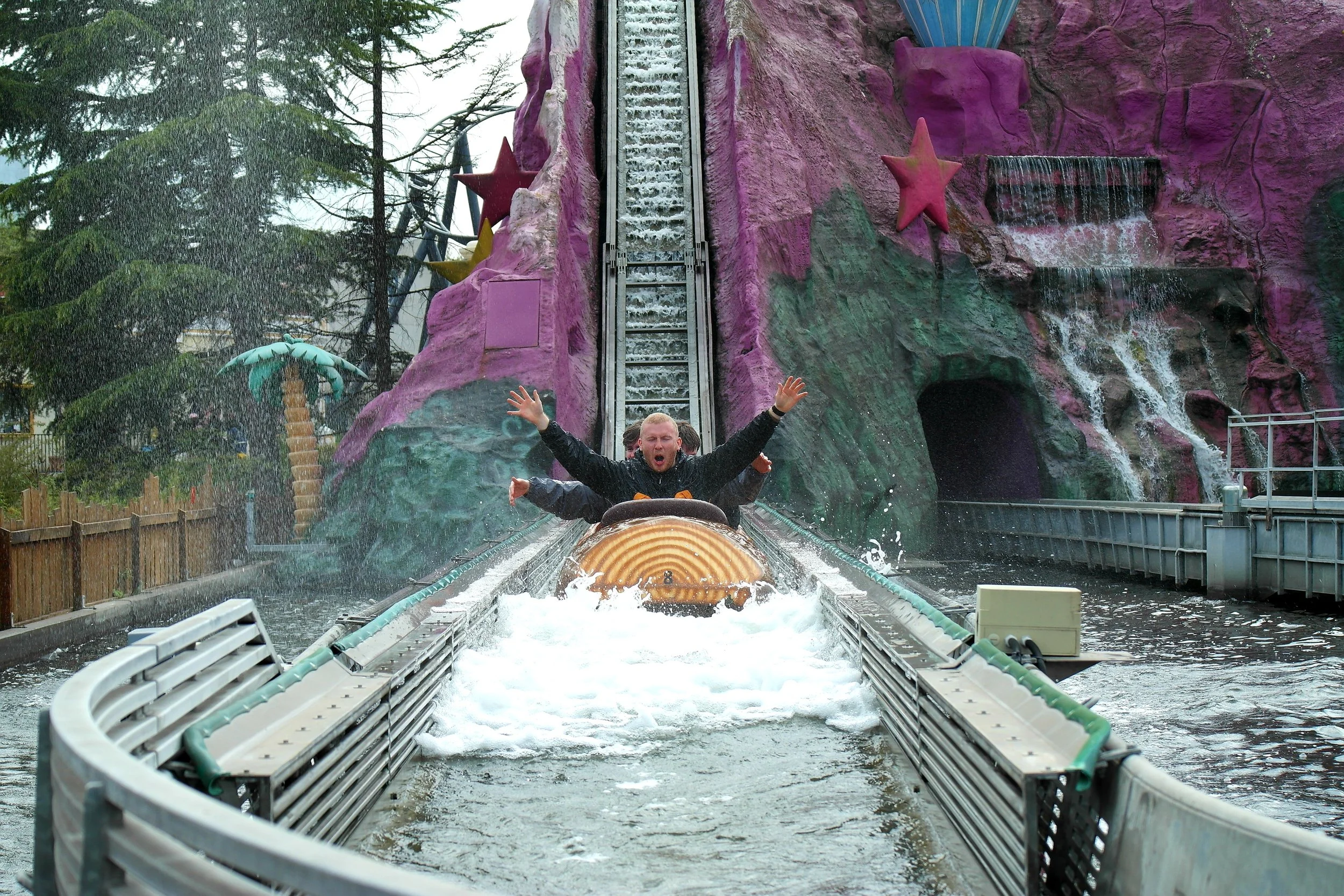Walibi Belgium, this day seemed a little off from the park but overall we survived with everything done that we wanted to do. A busier day than I have previously seen, as always I start the day by convincing the group to skip the brand new Intamin Mega Coaster Kondaa and instead head straight to Tiki-Waka, the Gerstlauer family coaster with a capacity of only 600 people an hour. A walk on ride followed by a 20 minute queue for Kondaa and then just under 30 minutes for Pyske Underground put us on a great start to hitting all the credits. Unfortunately there was a lot of technical issues with the day as Cobra, Fun Pilot and Pulsar all experienced down time. When Pulsar finally opened, this was still only on a one train operation meaning the queue was taking longer than we would have hoped. However the single rider line was excellent to get the group on in only 20 minutes while I had the opportunity to snap their pictures on the Mack multi launch water coaster.